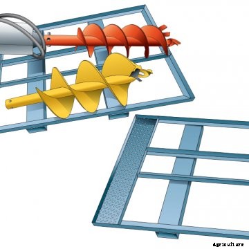 フォークがスキッドを配置した後、 ローダーは、ユニバーサルマウントのポストホールオーガーに取り付けることができます。