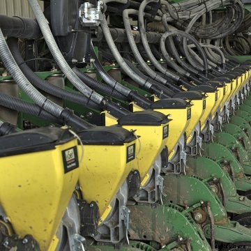 プランターの駆動輪(プランターが駆動輪を使用している場合)が土壌としっかりと接触していることを確認します。 「何が起こっているのかというと、ダウンプレッシャーシステムがプランターを持ち上げているということです。 」ジャサは説明します。少量の種を使用して、 短い距離を植え、 播種深さの確認、 種子と土壌の接触、 とシード間隔。