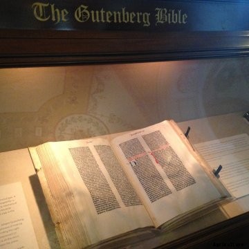 あなたがそこにいる間、 グーテンベルク聖書をご覧ください。 1455年以来続いている本を見るのは驚くべきことです。