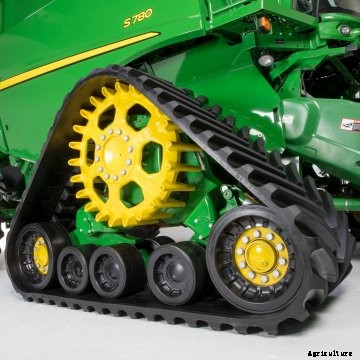 2019 Sシリーズコンバインでは、30インチまたは36インチのベルト幅のサスペンショントラックが工場で取り付けられたオプションとして利用できるようになりました。顧客がホイールのコンバインを注文することを選択した場合、ディーラーは後日トラックに切り替えるのを手伝うことができます。