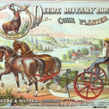 Deere&Mansurプランター(CharlesDeereとAlvahMansurの合弁事業)は、1877年の発売直後に有名になりました。 ユニークなロータリードロップデザインにより、 シードを計量するための水平操作プレートの使用を革新します。前進はすぐに農民の注意を引いた、 そして1899年までに、 ディアは世界最大のプランター生産者でした。