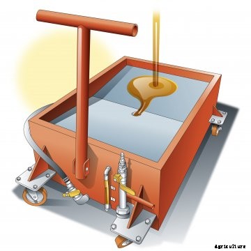 調整された空気圧が適用されると(約10 psi)、 オイルはホースから押し出され、より大きな貯蔵バレルに入れられます。